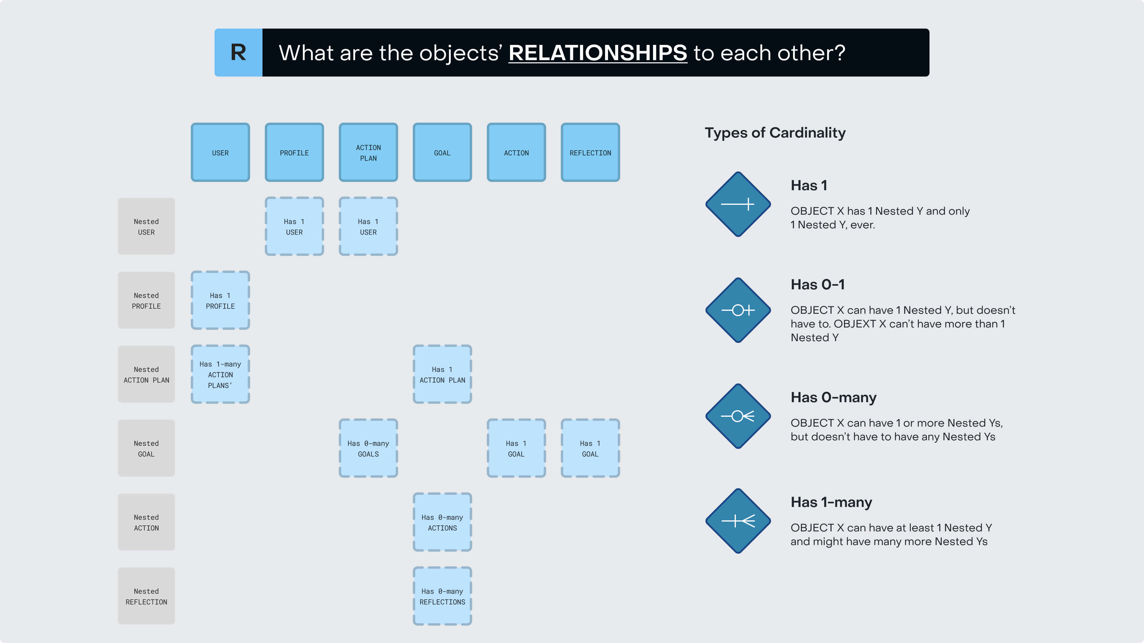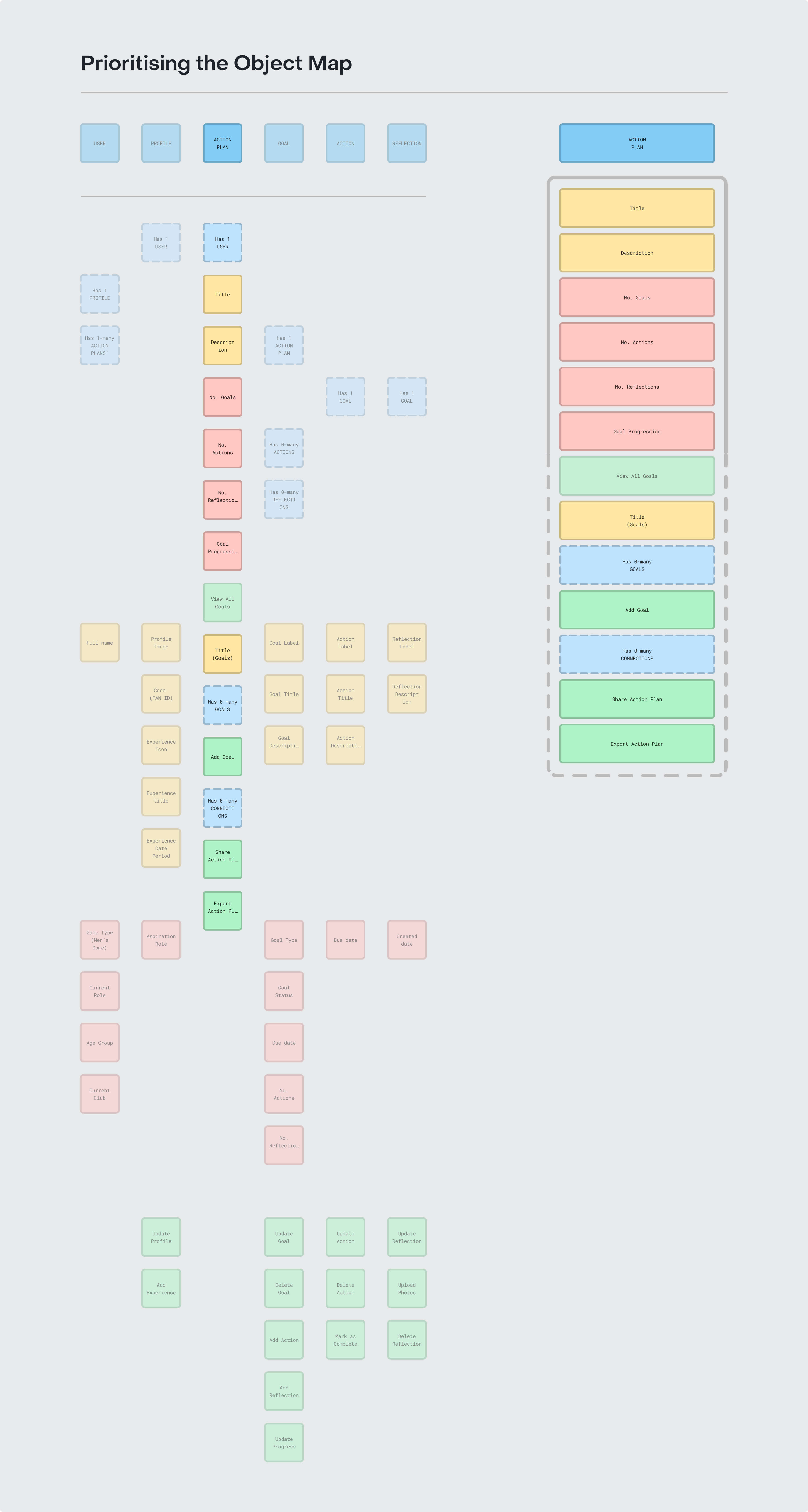 The coaching app required integration with multiple platforms, so we collaborated closely with developers to align the object model with database architecture, preventing misalignment between UX and backend systems.