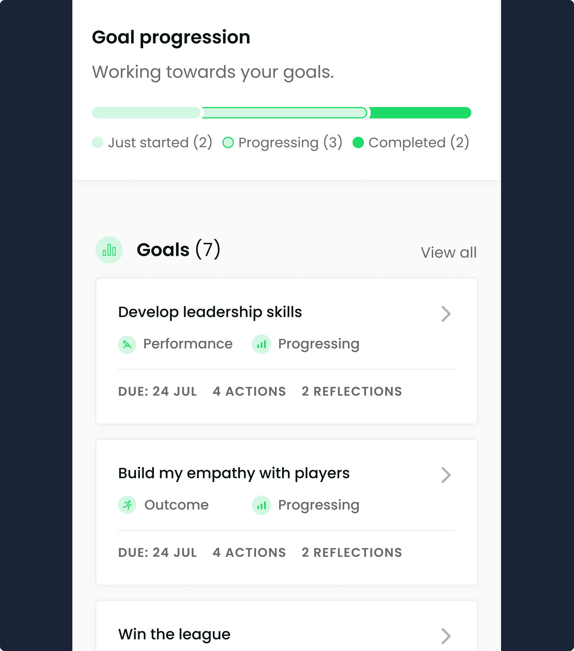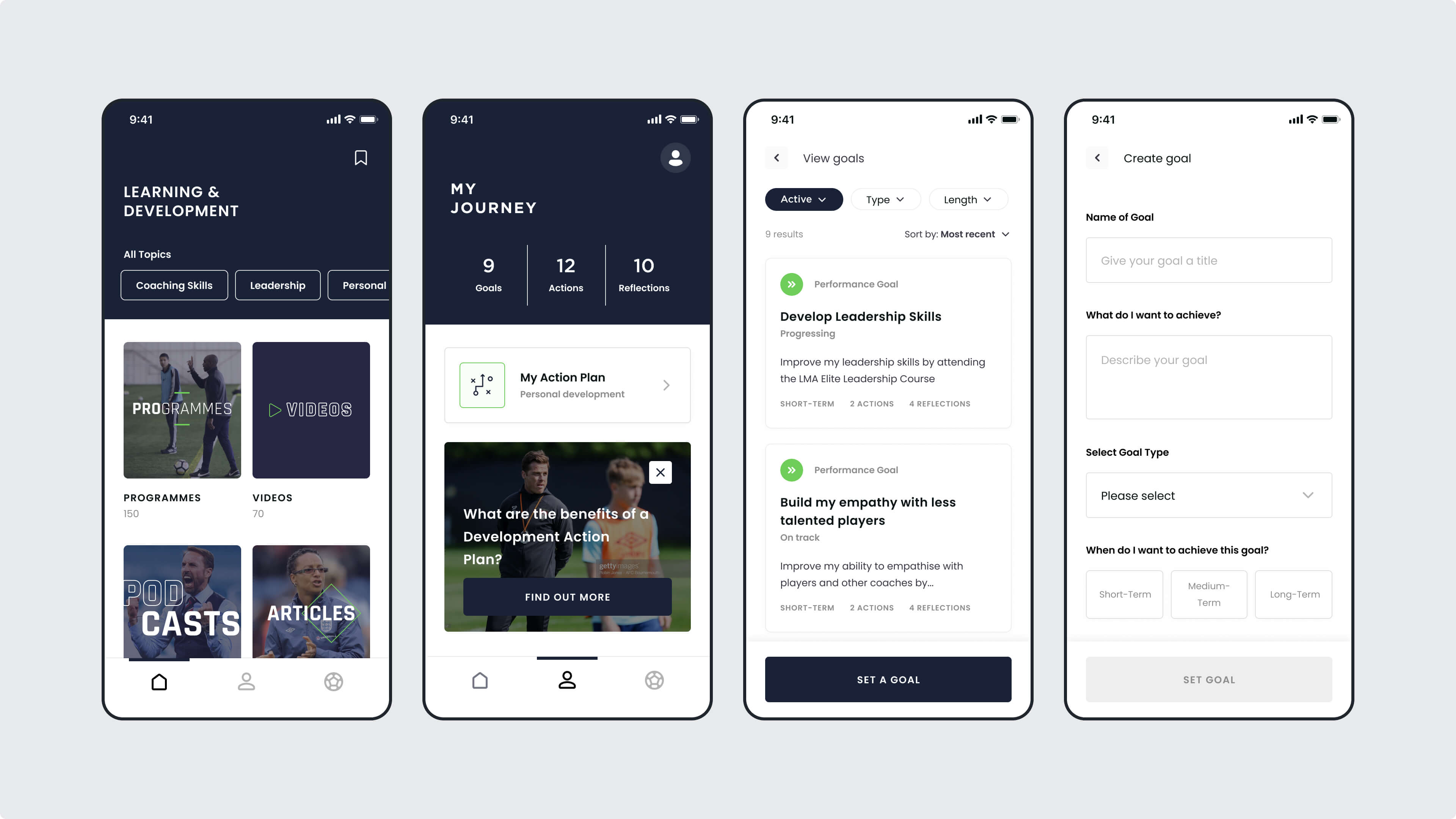 A New Object-Based Information Architecture – Instead of forcing coaches into a predefined navigation, the app was built around key objects (e.g. Plan, Goal, Action, Reflection).