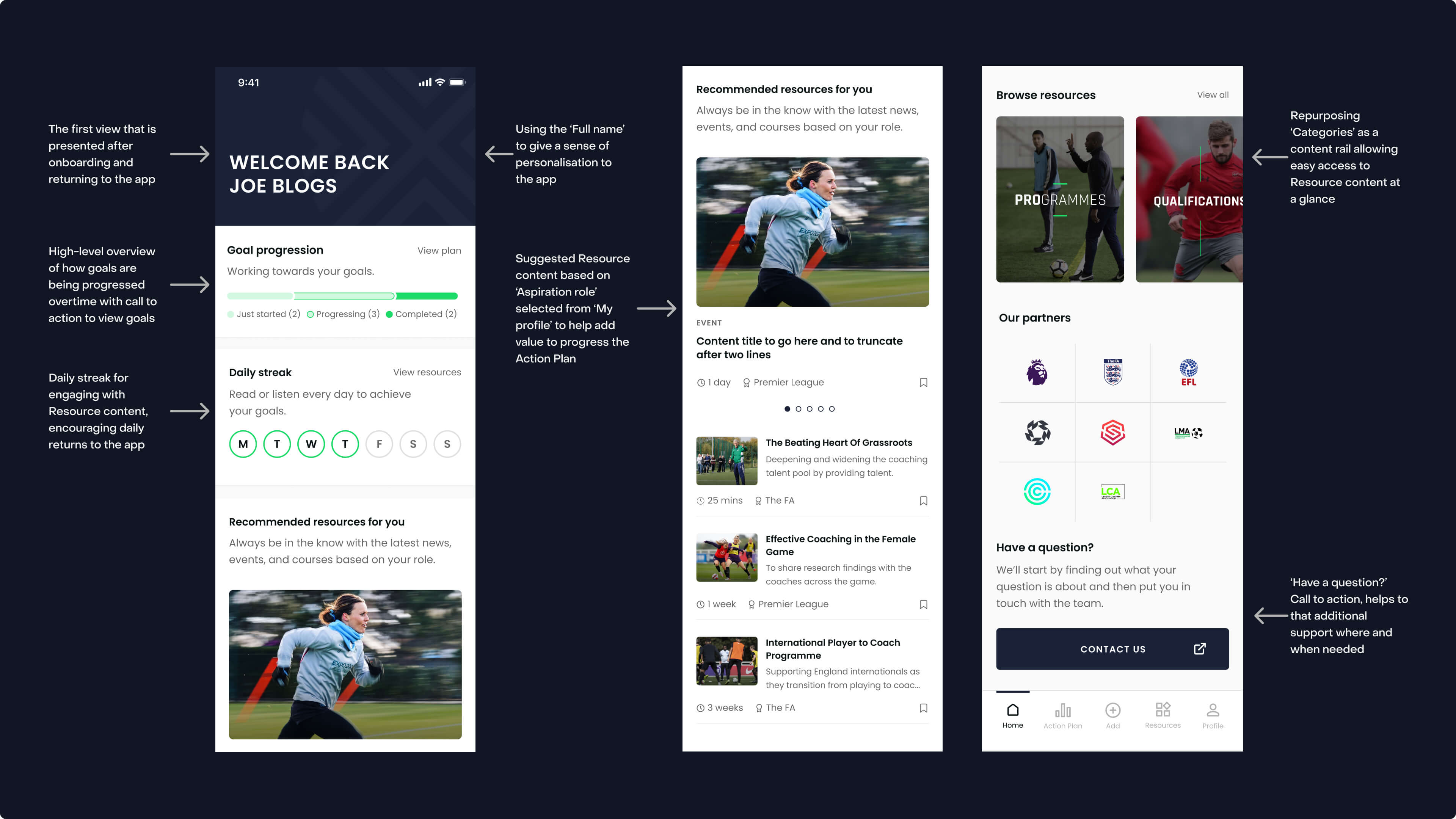 The Premier League required a scalable, intuitive digital solution to support the career development of professional football coaches across multiple leagues and governing bodies (e.g., Premier League, EFL, Women’s Super League, FA, and PFA). The existing system suffered from: